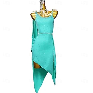 Abito da pattinaggio artistico Per donna Ragazze Pattinaggio sul ghiaccio Vestito Verde Schiena aperta Orlo asimmetrico Rete Alta elasticità Allenamento Competizione Vestiti da pattinaggio sul