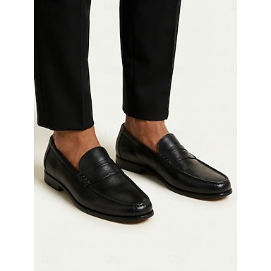 mocassini da uomo neri in similpelle, eleganti scarpe slip-on perfette per l'ufficio, eventi formali e per il comfort di tutti i giorni.