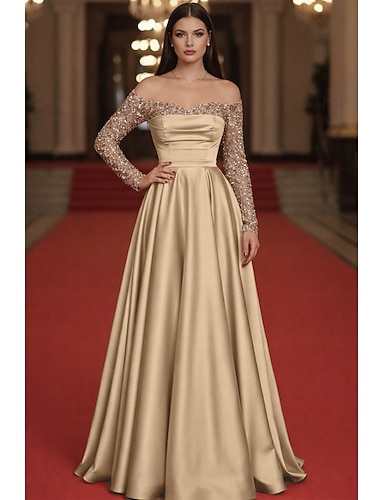 Abito da ballo a linea A di lunghezza fino al pavimento Abito da festa Abito da cocktail Abito per la madre della sposa senza maniche maniche corte spalle scoperte elegante vintage lussuoso formale