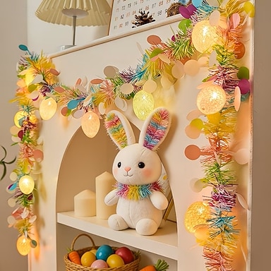 Luci natalizie a forma di coniglietto pasquale, 1,5 m, 10 LED, alimentate a batteria, per decorazioni per casa, camera da letto, balcone, giardino, feste e festività