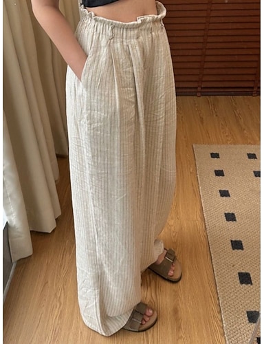 Per donna Pantaloni Pantaloni Estivi Pantaloni Larghi Pantaloni da Spiaggia Vacanza Moda Essenziale Lunghezza intera Vita Alta A righe Coulisse Tasca Fascia Elastica Comodità Morbido Traspirante
