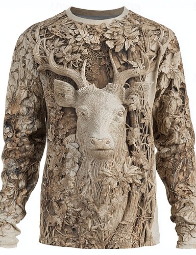 Per uomo Mimetico Cervo Maglietta Manica Lunga maglietta Stampa 3D Girocollo Camicia Moda All'aperto Streetwear Sport all'Aperto Caccia Marrone Scuro verde 1# Marrone chiaro Estate Primavera