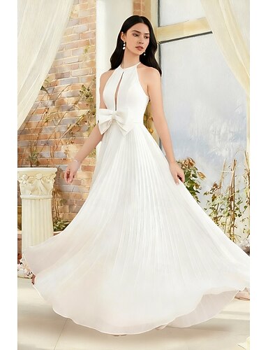 Sala Schiena Scoperta Abiti da sposa Linea ad A All'americana Senza Maniche Lunghezza al pavimento Chiffon Abiti da sposa Con Fiocco/Fiocchi Pieghe