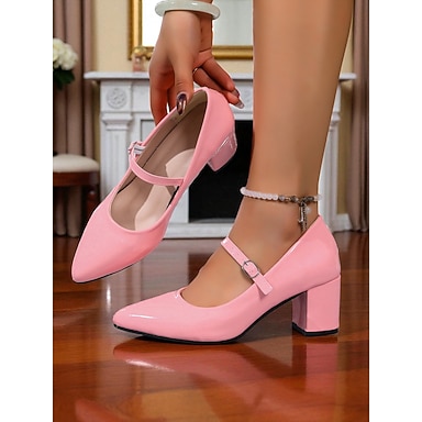 Scarpe da donna con tacco mary jane in similpelle verniciata rosa con tacco a blocco e cinturino regolabile - graziose scarpe eleganti in stile retrò anni '50 per donne, perfette per feste e matrimoni