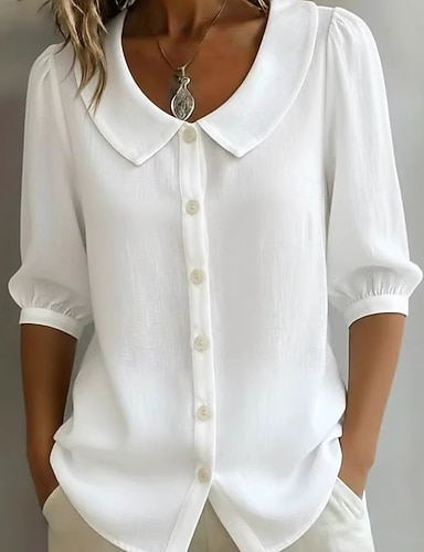 Per donna Set di Pantaloni Bolero Finto cotone e lino Manica 3/4 Colletto a Camicia Semplice Moda Streetwear Quotidiano Casuale Quotidiano All'aperto Bianco Marrone Verde Estate Vestibilità comoda