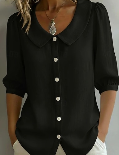 Per donna Camicia di Pizzo Blusa Pizzo Bottoni Tinta unica Elegante Casual Manica Lunga Scollo a V Top Regolari Quotidiano Nero Bianco Beige Estate Primavera Autunno