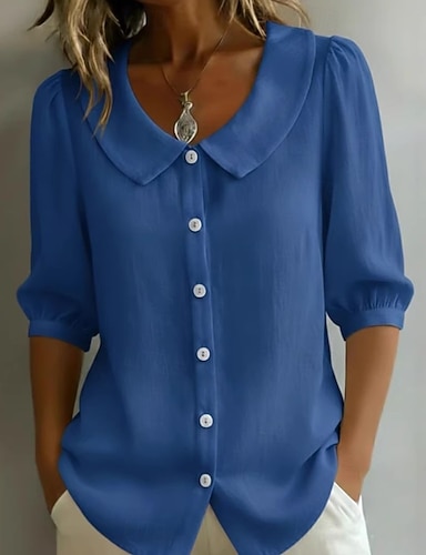 Per donna Camicia Floreale Elegante Manica Lunga Collare Peter Pan Top Regolari Quotidiano Abbigliamento casual alla moda Lavoro Bianco Giallo Azzurro Estate Primavera