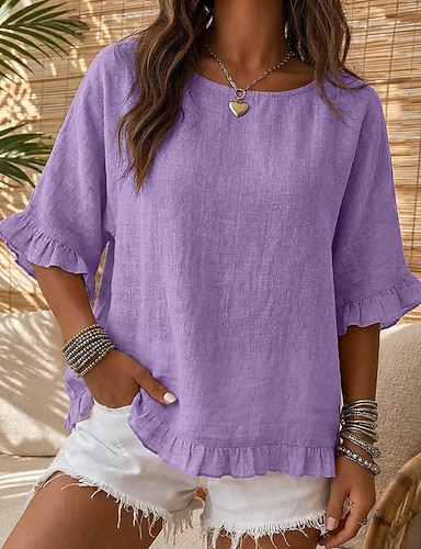 Per donna Top estivi Tinta unica Vacanza Vintage Manica Corta Top Regolari Casuale Blu Giallo Vino Rosso Viola chiaro Estate Primavera