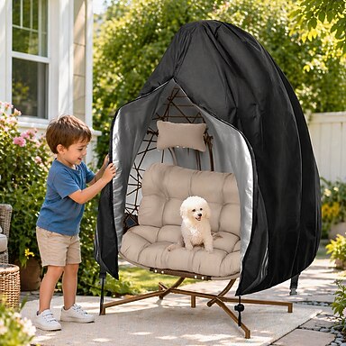 Coprisedia a uovo da giardino con cerniera, coprisedia a dondolo in vimini a forma di uovo, coprisedia da esterno impermeabile e resistente alle intemperie, coprisedia sospeso antivento, nero, 1 pezzo