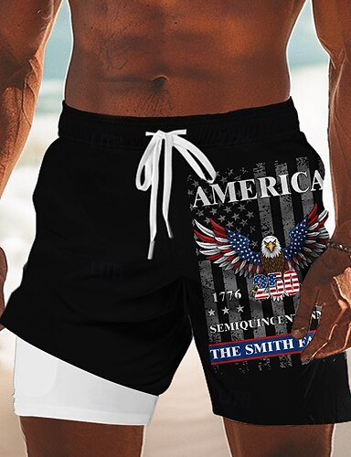 Per uomo 4 luglio, 250° anniversario degli Stati Uniti Aquila Bandiera degli Stati Uniti Pantaloncini foderati Pantaloncini da bagno 2 in 1 Pantaloncini da mare Misura del girovita medio Patriotico