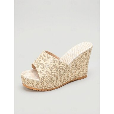 Sandali con zeppa beige da donna in pizzo – eleganti scarpe da cerimonia estive da indossare in giardino