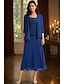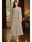 Set di abiti da invitata al matrimonio di lunghezza tè Abito per la madre della sposa Abito a maniche 3/4 scollatura quadrata elegante semplice per invitata al matrimonio in tinta unita