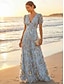 Matrimonio in spiaggia Abiti da cocktail a linea ad A Abito elegante Ospiti di matrimoni Abbigliamento per feste Lunghezza alla caviglia Senza maniche Collo a V Pizzo con volant Applicazioni Abiti