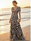 Linea ad A Abito Lunghezza alla caviglia Vestito maxi Vestito da Festa Abito da Cocktail Abito da cerimonia per signora Manica Lunga Scollo a V Elegante Vintage Lussuoso Formale Ospite di nozze Derby