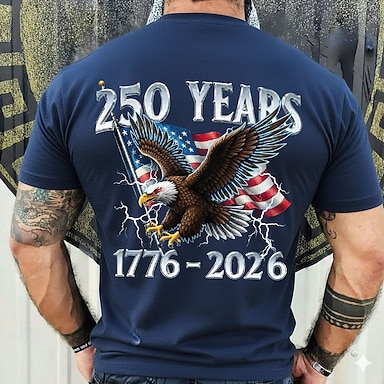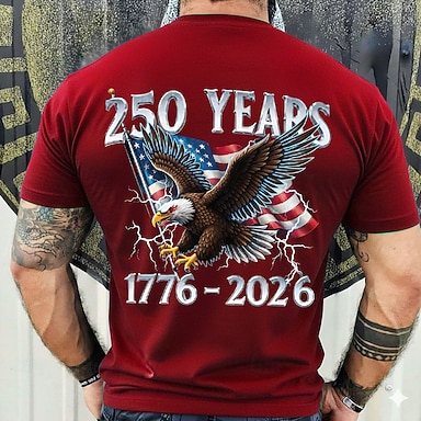 4 luglio 2026 250° Giorno della Memoria T-Shirt a Maniche Corte in Stampa 3D Crew Neck Patrriottica Patriot Bandiera degli Stati Uniti per Uomini Casual in Strada Quotidiana