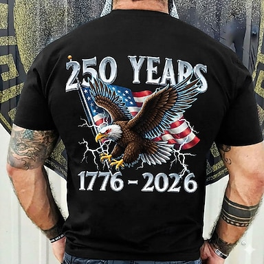 4 luglio 2026 250° Giorno della Memoria Maglietta Casual a Manica Corta in Stile Ufficiale con Stampa 3D della Bandiera USA per Uomini