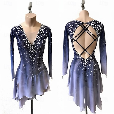 Vestito da pattinaggio artistico Per donna Da ragazza Pattinaggio sul ghiaccio Vestiti Blu Foro per pollice tintura sfumata Elevata elasticità Professionale Competizione Vestiti da pattinaggio sul