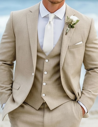 Uomo Smoking Completi in Lino Matrimonio in Spiaggia Matrimonio Beige Estate Tuta Bavero classico Moda Formale Tinta unita Vestibilità standard 2 pezzi Monopetto a un bottone