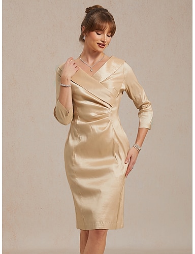 Abito da festa a colonna di lunghezza tè Abito da cocktail Abito da invitata di matrimonio Abito per la madre della sposa a maniche lunghe scollatura a V elegante vintage formale in lana con cintura