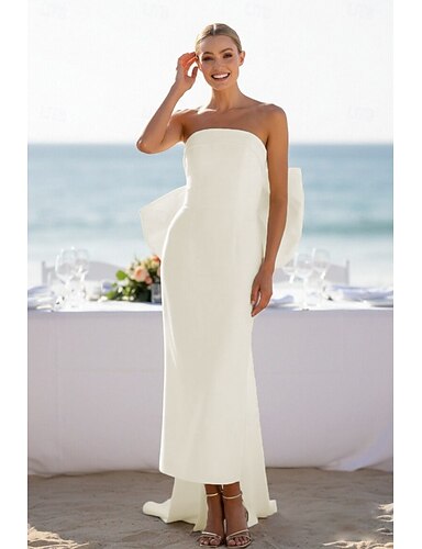 Tubino Colonna Strascico a Terra Lunghezza al pavimento Abito da invitata a nozze Abito Formale Abito da sera Abiti da Ballo Elegante Senza Maniche Senza Spalline Balli di fine anno Formale Raso con