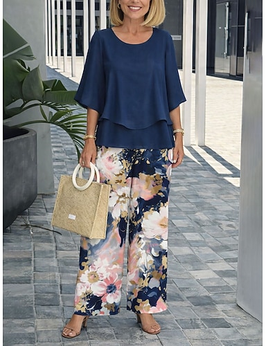 Per donna Set di Pantaloni Mezza Manica A farfalla Girocollo Floreale Grafico Elegante Vacanza Casuale Quotidiano Blu Blu marino Viola Primavera & Estate Vestibilità comoda