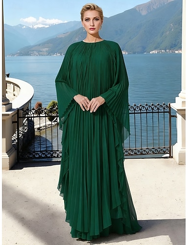 Linea ad A Lunghezza al pavimento Abito da invitata a nozze Abito Formale Abito da sera Abito da cerimonia per signora Manica Lunga Girocollo Elegante Semplice Formale Ospite di nozze Chiffon con