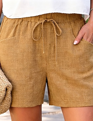 Per donna Pantaloncini in cotone e lino Shorts Pantaloncini Estivi Shorts da Spiaggia Vacanza Moda Casual Quotidiano Corto Vita Alta Tinta unica Semplice Coulisse Tasca Fascia Elastica Comodit