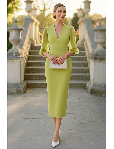Tubino Colonna Lunghezza Tè Vestito da Festa Abito da Cocktail Abito da invitata a nozze Abito da cerimonia per signora Manica 3/4 Scollo a V Elegante Minimalista Ospite di nozze Cocktail party