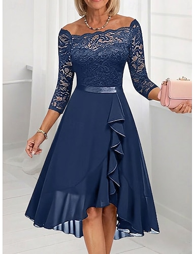 Linea ad A Abito Abito alto-basso Lunghezza alla caviglia Abito da Cocktail Abito da cerimonia per signora Manica 3/4 Scollo a Barca Elegante Semplice Formale Ospite di nozze Semi-Formale con Volant