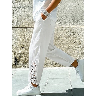 Per donna Pantaloni Estivi 100% cotone Pantaloni Corti Moda Streetwear Comfort Lunghezza alla caviglia Misura del girovita medio Semplice Pizzo Comodo Confortevole Streetwear Abbigliamento quotidiano
