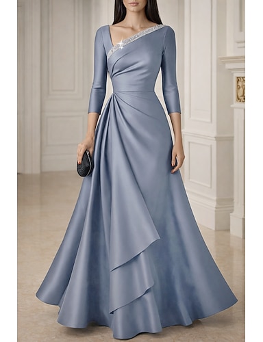 Abito lunghezza fino al pavimento abito per invitata a un matrimonio abiti formali abito da sera abito per madre della sposa maniche 3/4 scollo tondo elegante invitata a un matrimonio con colore