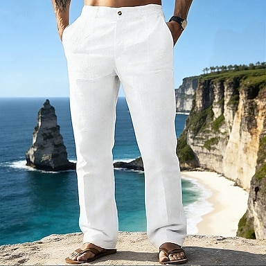 40% Lino Per uomo Pantaloni di lino Pantaloni Pantaloni estivi Tasche Gamba dritta Liscio Traspirante Comodo Ufficio / Business Giornaliero Da mare Classico Informale Nero Bianco