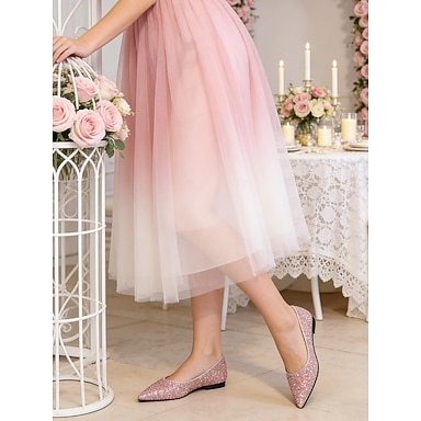 Per donna Scarpe da Sposa Taglie Forti Scarpe Scintillanti Scarpe da Sposa Glitter scintillante Tacco basso Punta a Punta Elegante PU Sintetici Mocassino Argento Rosa Champagne