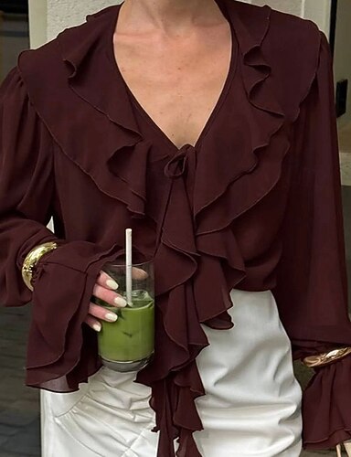 Linea ad A Lunghezza al pavimento Abito in Raso Abito da invitata a nozze Abito Formale Abito da cerimonia per signora Manica Lunga Colletto a Camicia Elegante Vintage Formale Ospite di nozze Chiesa