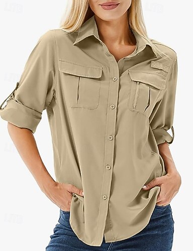 Per donna Camicia Estiva Camicia casual Blusa Tasca Tinta unica Vacanza Elegante Essenziale Manica Lunga Collo ripiegato Top Regolari Quotidiano Lavoro Spiaggia Blu Bianco Rosa Beige Estate Primavera