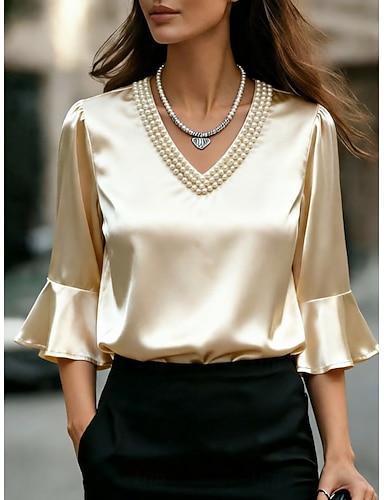 Per donna Elegant Elegante Top in raso Blusa Bottoni Semplice Elegante Quotidiano Manica Lunga Scollo a V Top Regolari Quotidiano Rosso Verde Cachi Grigio Autunno