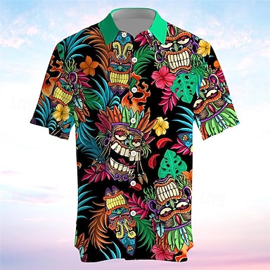 Per uomo Totem Camicia Camicia hawaiana Camicia Aloha Manica corta Camicia Collo ripiegabile Festività Hawaiano Esterno Da mare Hawaiano Blu Fucsia Verde S M L