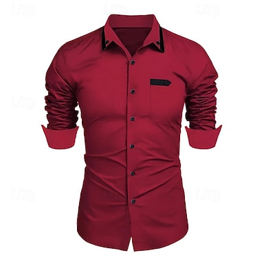 Per uomo Camicia Camicia elegante Semplice Formale Matrimonio Nero Bianco Vino Blu marino Manica Lunga Collo ripiegato Estate Primavera Abbigliamento