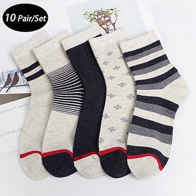 Per uomo 10 coppie Pacchi Multipli Calzini Calzini da Corsa Calzini Casual Kaki Colore A righe Vacanza Sport & Outdoor Quotidiano Base Medio Primavera Autunno Moda Casual