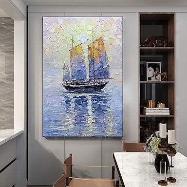 Pittura A Olio Fatta A Mano Su Tela Decorazione Della Parete Di Arte Moderna Barca Ormeggiata Paesaggio Astratto Per La Decorazione Domestica Pittura Arrotolata Senza Cornice Non Allungata