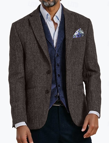 Per uomo Blazer in Tweed Colletto ad incastro Retrò Vintage Classico Spina di Pesce Blazer Marrone Vestibilità standard Monopetto Due Bottoni