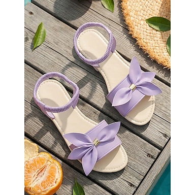 sandali bassi con fiocco viola da donna - scarpe aperte e slip-on in stile casual estivo per donna, sandali leggeri per le vacanze, la spiaggia, la piscina, i viaggi e l'uso quotidiano