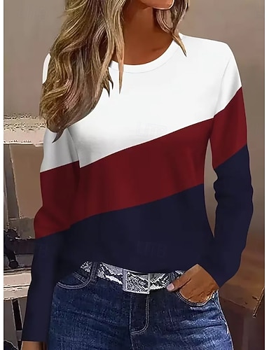 Per donna Maglietta Stampato Grafico Geometrico A righe Vintage Moda Elegante Manica Lunga Girocollo Top Regolari Quotidiano Weekend Blu Nero Rosa Rosso Estate Primavera Autunno