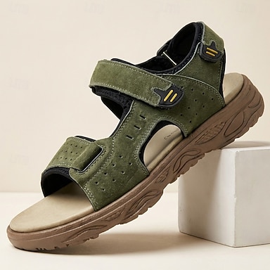 Sandali sportivi da uomo verdi, aperti in punta, regolabili, scarpe da passeggio leggere e comode per l'estate, ideali per viaggi, escursioni, vacanze al mare e tempo libero all'aria aperta.