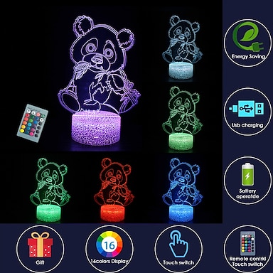 orso panda gigante 3d illusion lampade 16 cambia colore tavolo touch scrivania led luce notturna grandi regali per i bambini