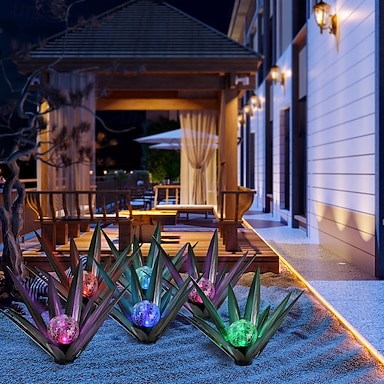 1 lampada decorativa solare da esterno in metallo a forma di agave, con LED a cambio colore, ideale per giardino, cortile, prato e vialetti – perfetta per matrimoni, festività, feste, patio e per