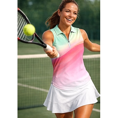 Per donna Blocco di colori Sfumatura Maglietta sportiva Polo da golf Maglia da tennis Maglietta da tennis Senza Maniche Cerniera Floreale UPF50+ Resistente ai Raggi UV Alta elasticità Traspirante