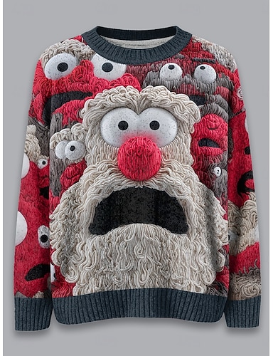 Maglione di Natale brutto Per uomo Stampa Personaggio dei cartoni animati Maglione Maglieria Girocollo Casual All'aperto Vacanza Festival Lavoro a maglia Tenere al caldo Manica Lunga Primavera