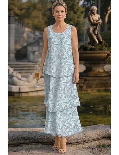 Linea ad A Lunghezza al pavimento Lunghezza alla caviglia Vestito in Chiffon Abito da cerimonia per signora Senza Maniche Scollo Tondo Elegante Vintage Abbellito Formale Ospite di nozze Ricevimento