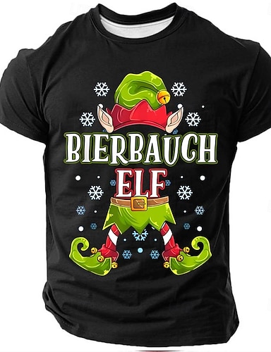 Natale Per uomo Elfo Maglietta Manica Corta maglietta Stampa 3D Girocollo Camicia Quotidiano Designer Artistico Vacanza Feste Streetwear Nero Rosso Blu Tutte le stagioni Abbigliamento S M L XL XXL